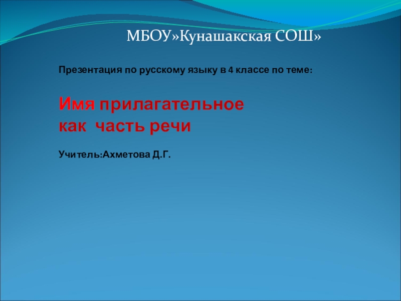 МБОУ»Кунашакская СОШ»