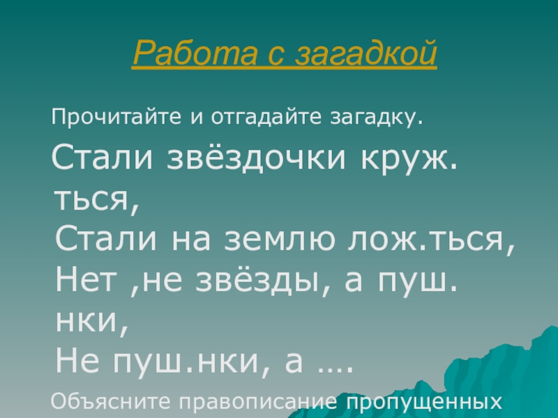 Слайд 19Работа с загадкой