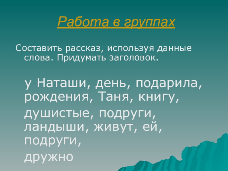 Составить рассказ, используя данные слова. Придумать заголовок.