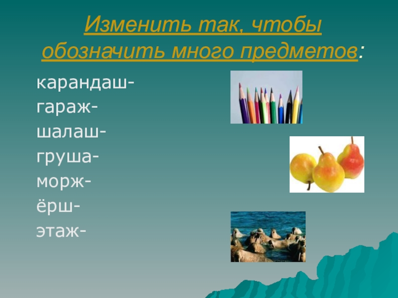 Слайд 7Изменить так, чтобы обозначить много предметов: