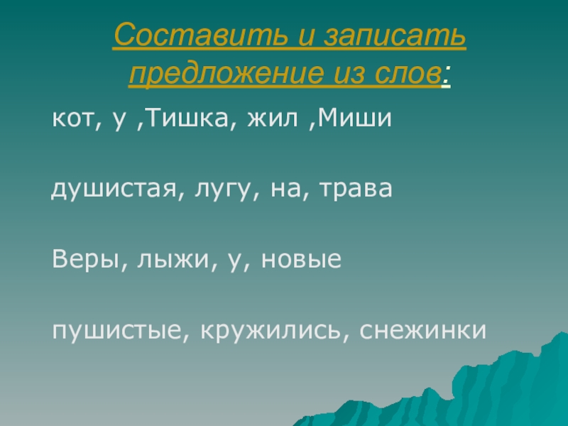 Слайд 10Составить и записать предложение из слов: