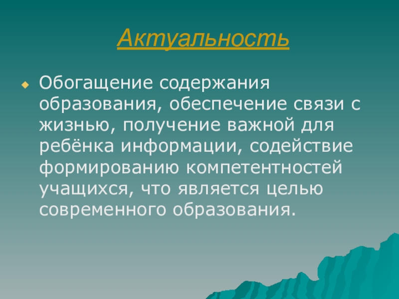 Обогащение содержания образования, обеспечение связи с жизнью, получение важной для ребёнка