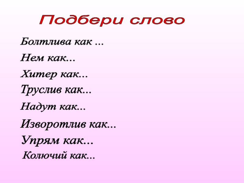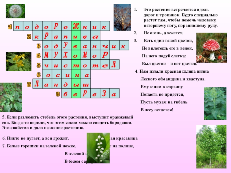 6. Никто не пугает, а вся дрожит. 8. Русская красавица