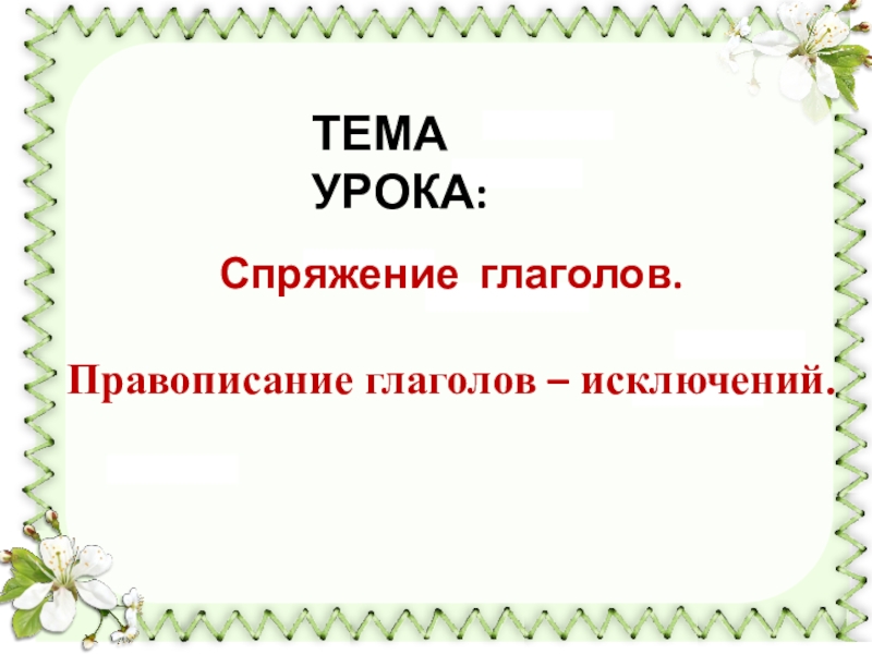 ТЕМА УРОКА: Спряжение глаголов. Правописание глаголов – исключений.