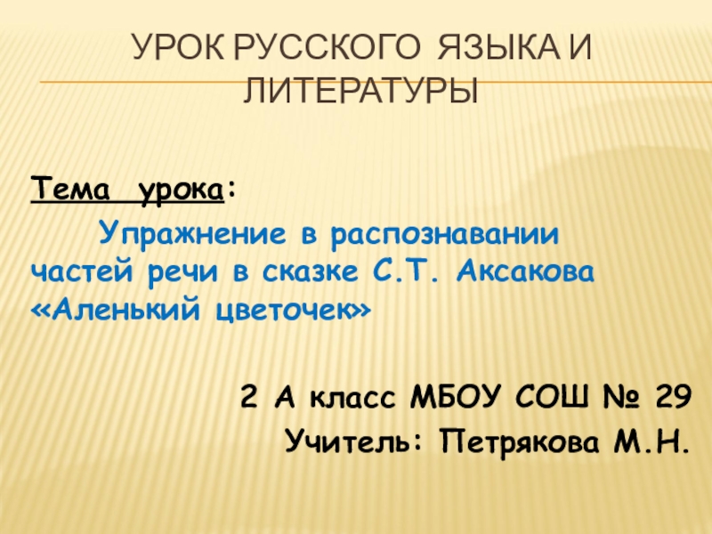 распознавании частей речи в сказке С.Т. Аксакова «Аленький цветочек»