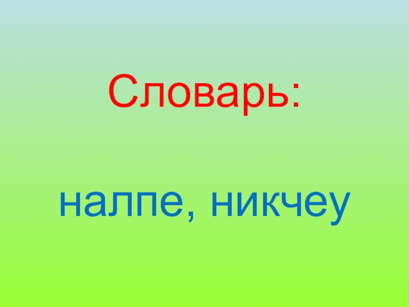 Слайд 2 Словарь: налпе, никчеу