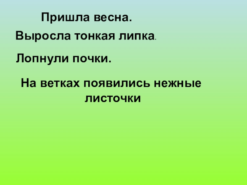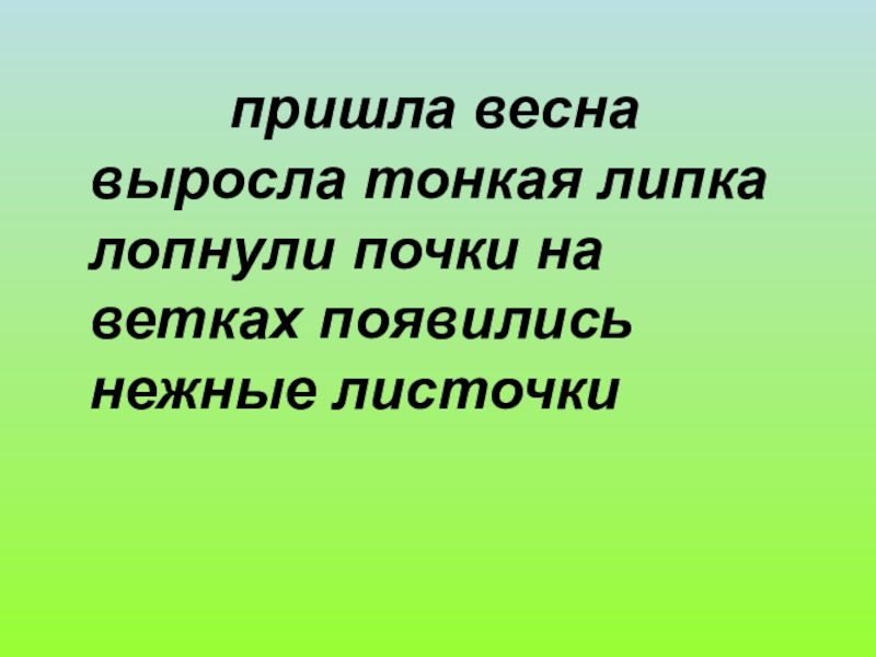 Пришла весна.Выросла тонкая липка.Лопнули почки.На ветках появились нежные листочки