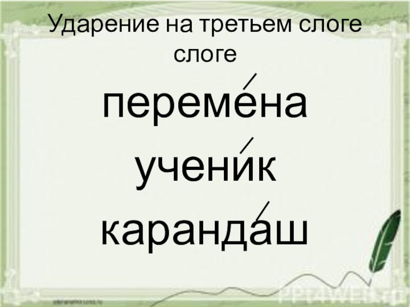 Ударение на третьем слоге слогепеременаучениккарандаш