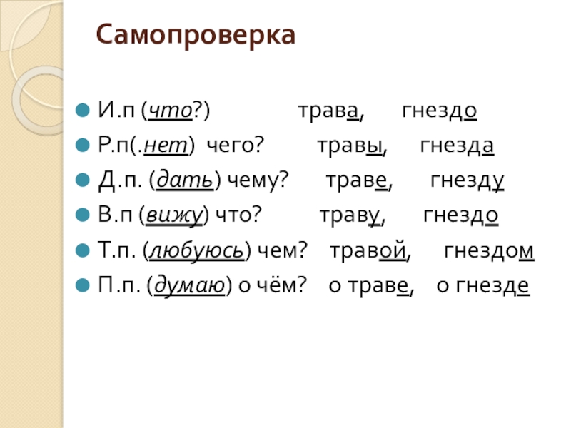 по падежам».