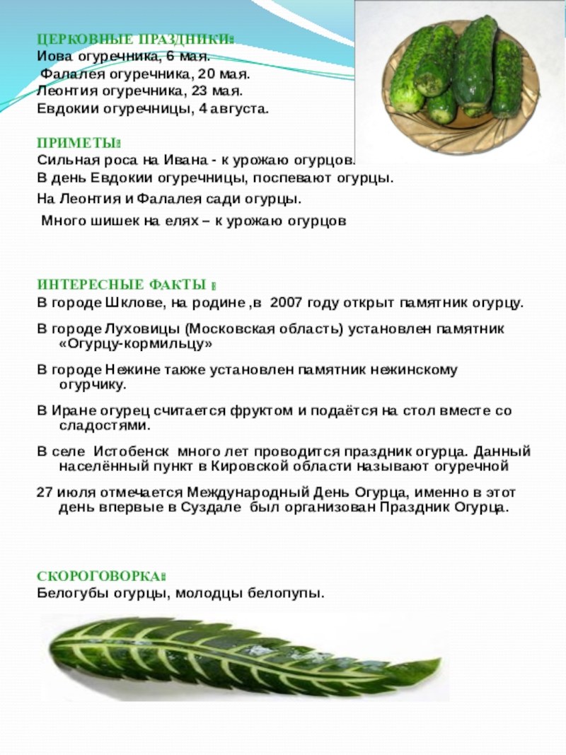 27 июля отмечается Международный День Огурца, именно в этот день впервые в Суздале был организован Праздник Огурца.