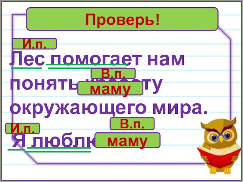 Задания для 3 группы: упр. 54 стр.31 разобрать по членам предложения. Каким членом предложения является существительное в винительном падеже?