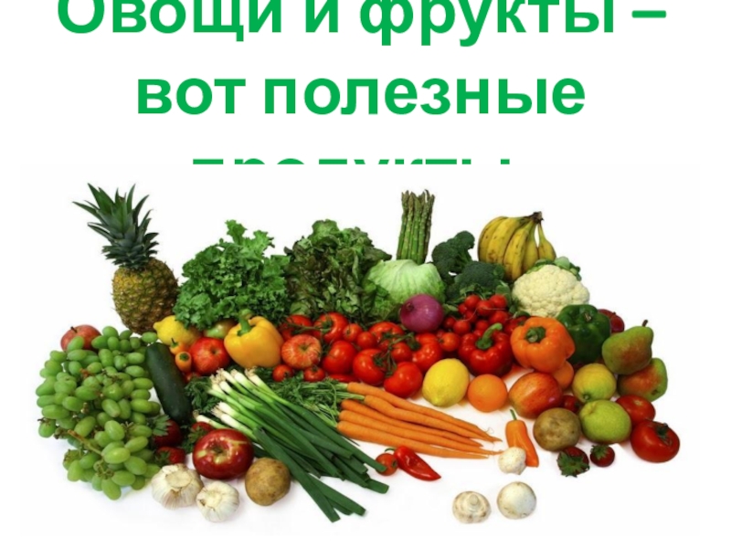 Слайд 10Овощи и фрукты – вот полезные продукты.