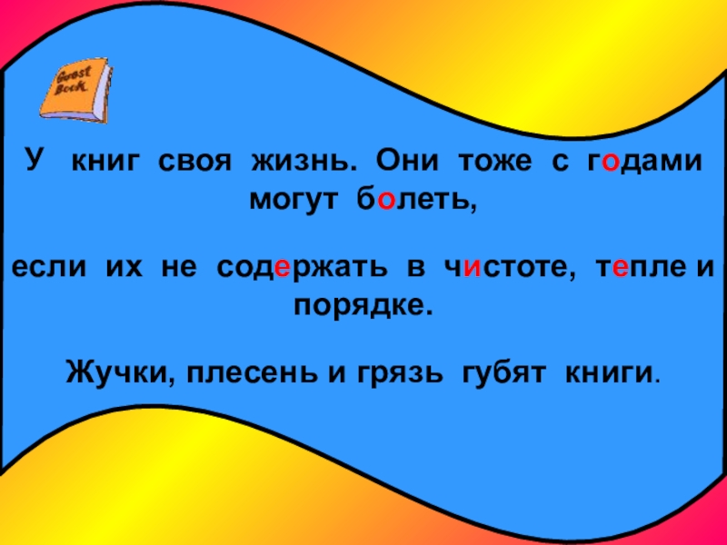 У  книг своя жизнь. Они тоже с годами могут болеть,если их не содержать в чистоте, тепле