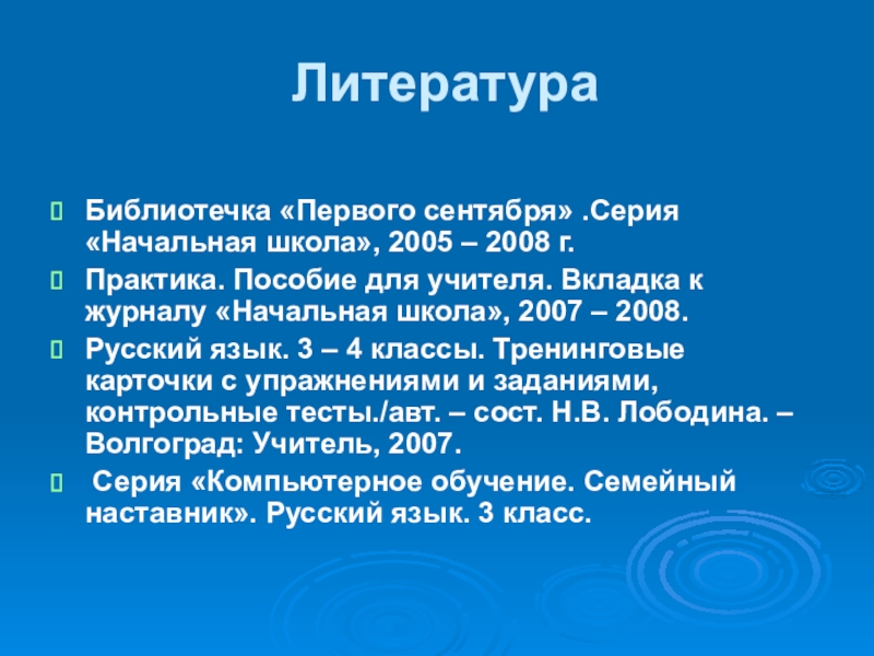 Русский язык. 3 – 4 классы. Тренинговые карточки с упражнениями и заданиями, контрольные тесты./авт. – сост. Н.В. Лободина. – Волгоград: Учитель, 2007.