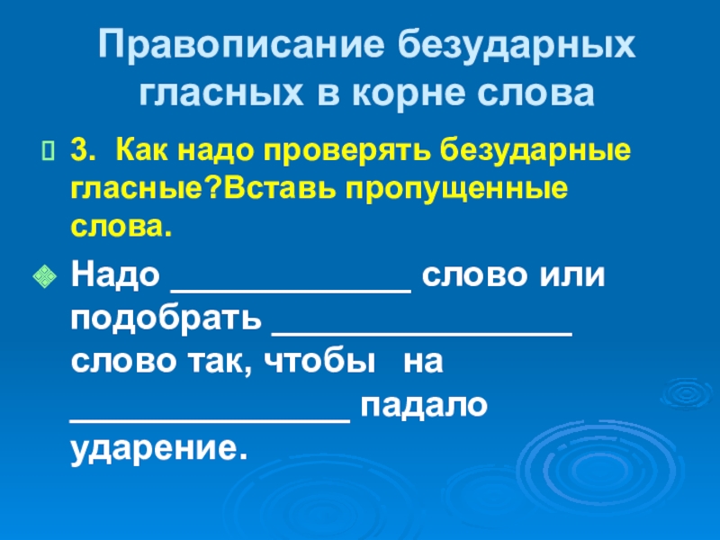 3. Как надо проверять безударные гласные? Вставь пропущенные