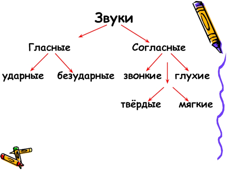 Звуки   Гласные       Согласныеударные  безударные звонкие  глухие