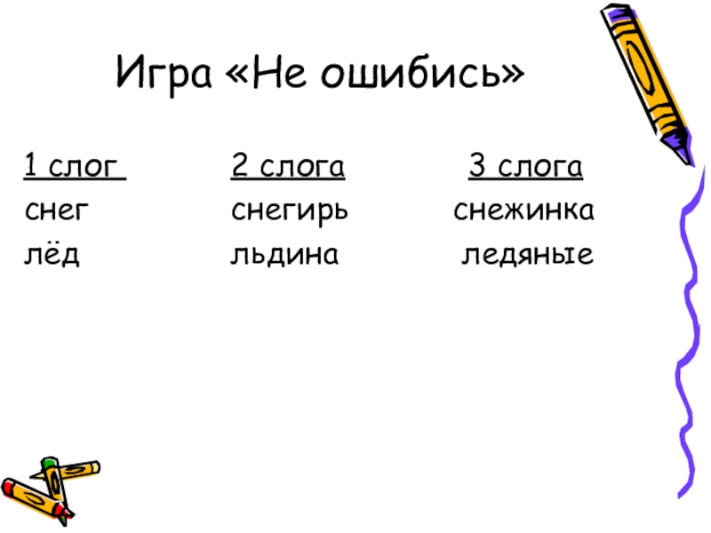 Игра «Не ошибись»1 слог      2 слога