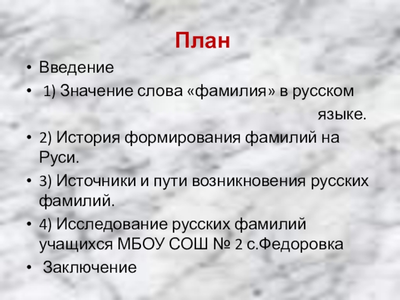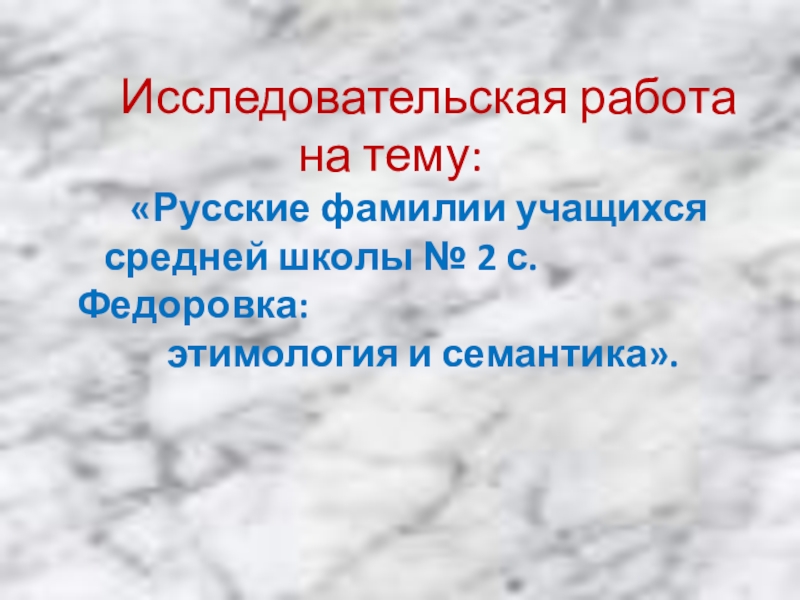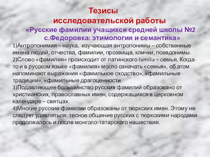 4) Исследование русских фамилий учащихся МБОУ СОШ № 2 с.Федоровка