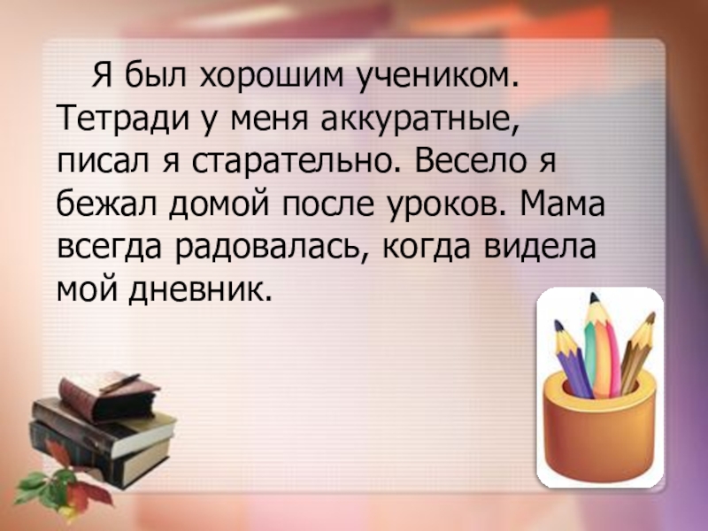 Весело я бежал домой после уроков. Мама всегда радовалась, когда видела мой дневник.