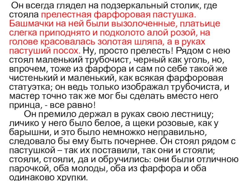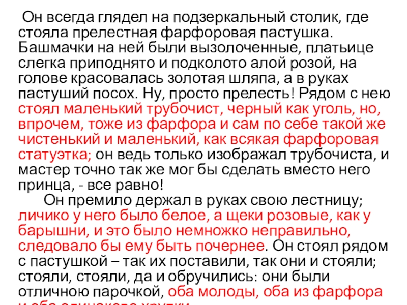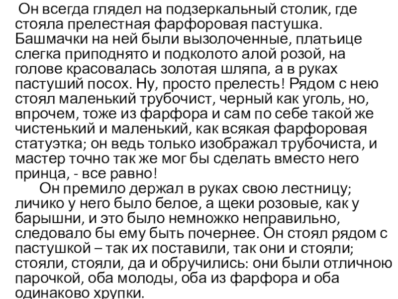 Слайд 13 Он всегда глядел на подзеркальный столик, где стояла прелестная фарфоровая