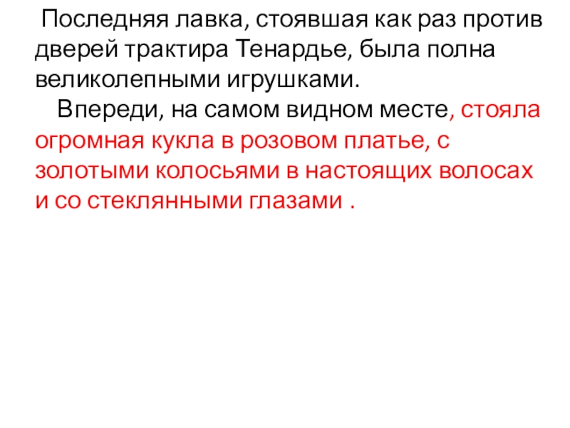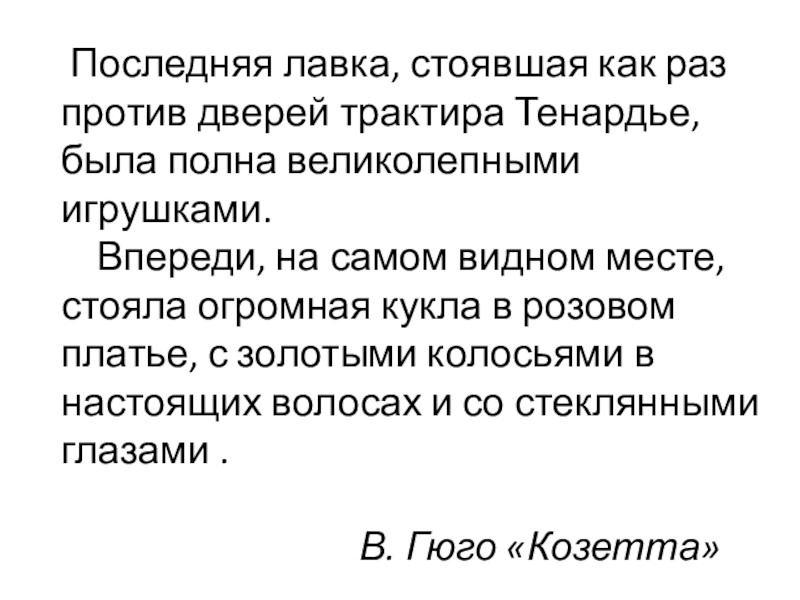 Слайд 9 Последняя лавка, стоявшая как раз против дверей трактира Тенардье, была