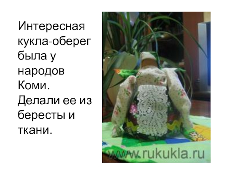 Слайд 32Интересная кукла-оберег была у народов Коми. Делали ее из бересты и