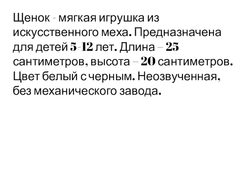 Слайд 7Щенок - мягкая игрушка из искусственного меха. Предназначена для детей 5-12