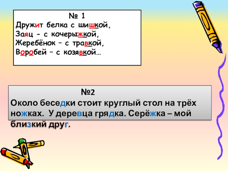 Около беседки стоит круглый стол на трёх ножках. У деревца грядка. Серёжка – мой близкий друг.