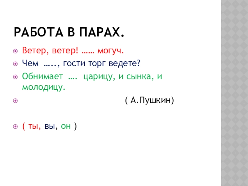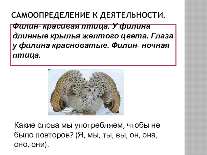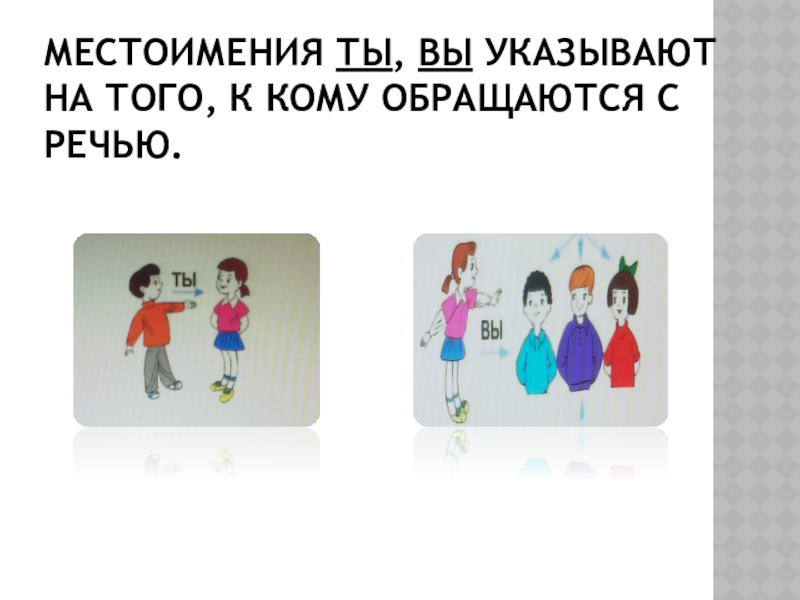 Какие слова мы употребляем, чтобы не было повторов? (Я, мы, ты, вы, он, она, оно, они).