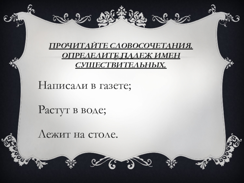 Прочитайте словосочетания. Определите падеж имен существительных.Написали в газете;Растут в воде;Лежит на столе.