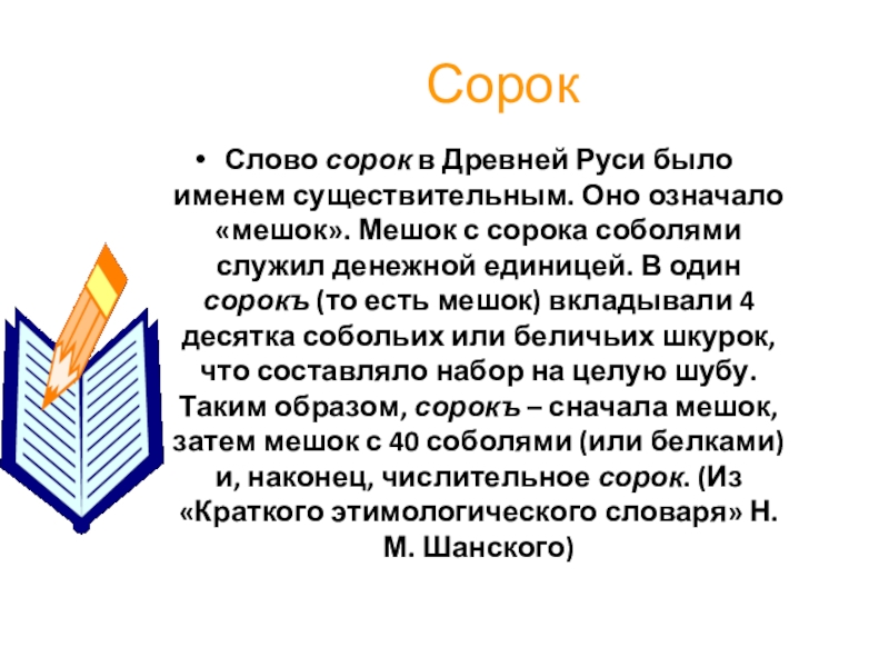 Слово сорок в Древней Руси было именем существительным. Оно означало «мешок».