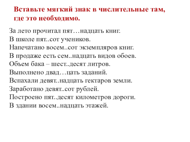 Слайд 14Вставьте мягкий знак в числительные там, где это необходимо.