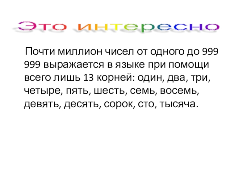 Слайд 8 Почти миллион чисел от одного до 999 999 выражается