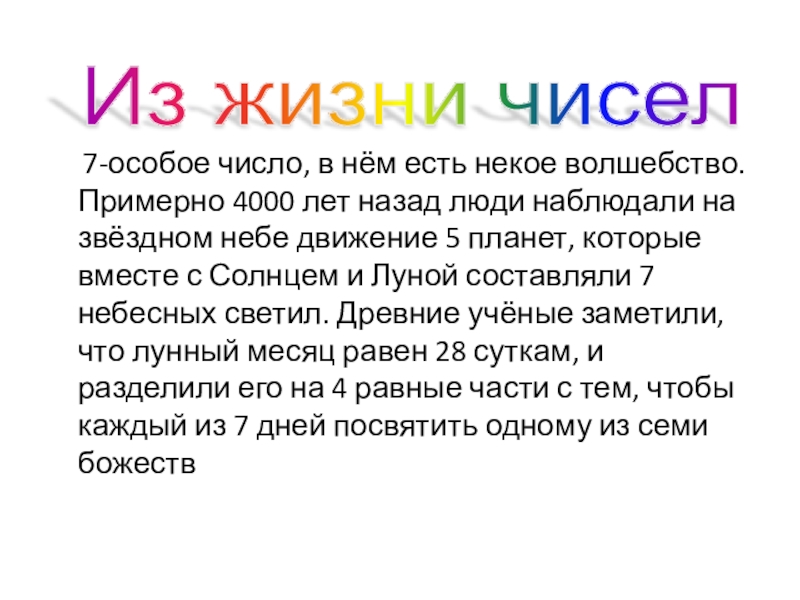 Слайд 4 7-особое число, в нём есть некое волшебство. Примерно