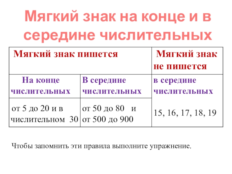 Слайд 15Мягкий знак на конце и в середине числительных