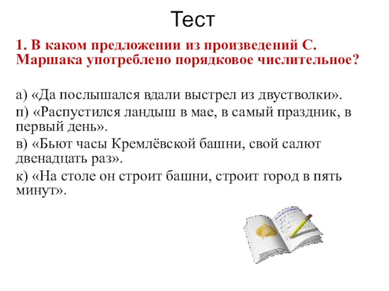 1. В каком предложении из произведений С.Маршака употреблено порядковое числительное?