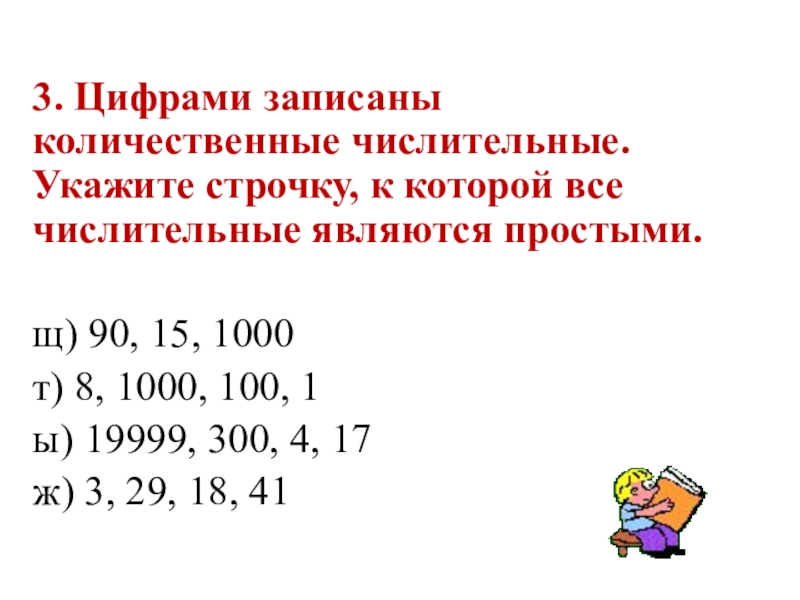 3. Цифрами записаны количественные числительные. Укажите строчку, к которой все числительные