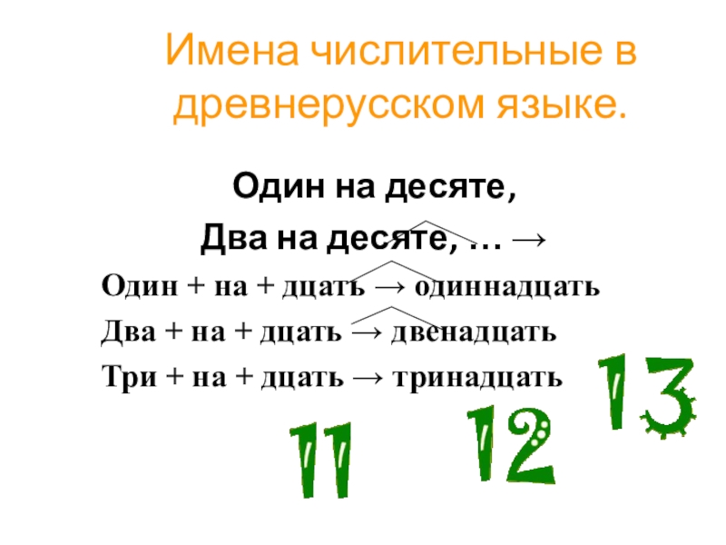 Слайд 5Имена числительные в древнерусском языке.