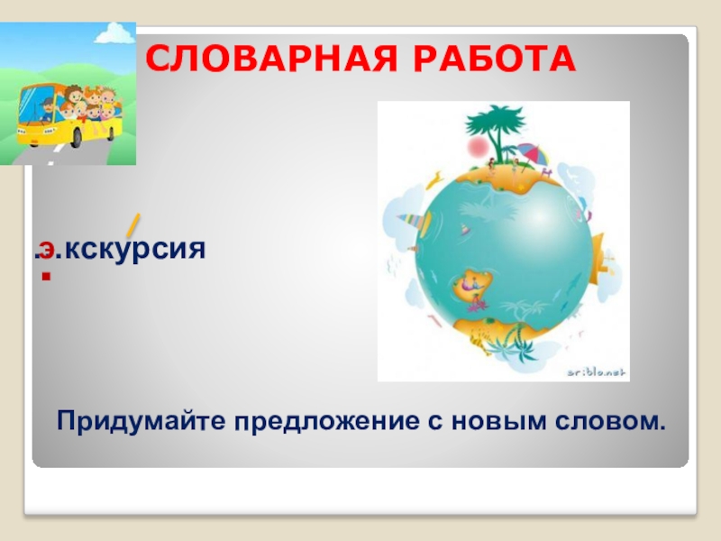 СЛОВАРНАЯ РАБОТА…кскурсия.эПридумайте предложение с новым словом.
