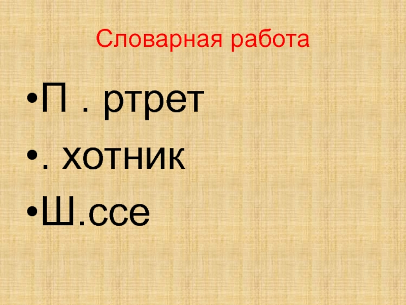 Словарная работаП . ртрет. хотникШ.ссе