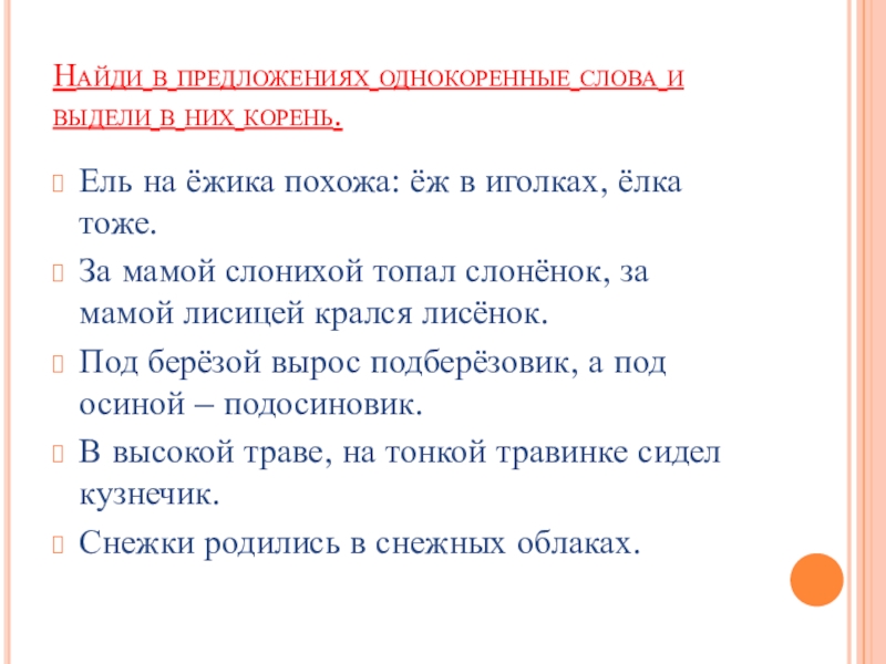 Слайд 11Найди в предложениях однокоренные слова и выдели в них корень.
