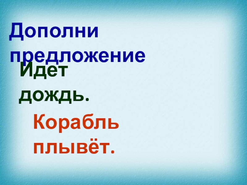 Дополни предложениеИдет дождь.Корабль плывёт.