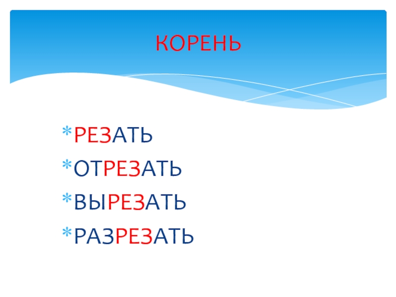РЕЗАТЬОТРЕЗАТЬВЫРЕЗАТЬРАЗРЕЗАТЬКОРЕНЬ
