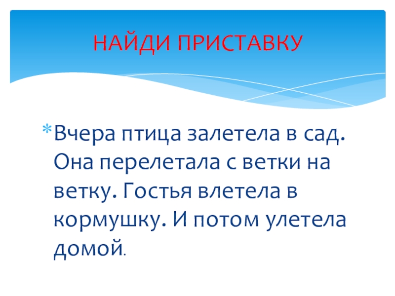 Слайд 7Вчера птица залетела в сад. Она перелетала с ветки на ветку.
