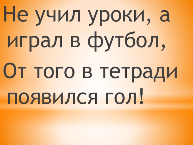 Не учил уроки, а играл в футбол,От того в тетради появился гол!