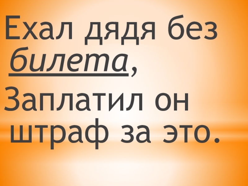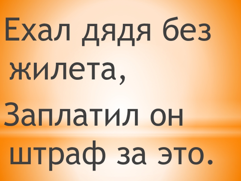 Ехал дядя без жилета,Заплатил он штраф за это.