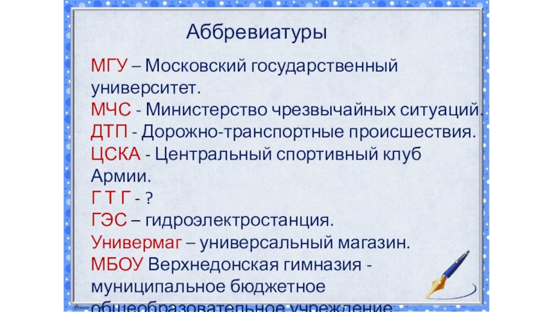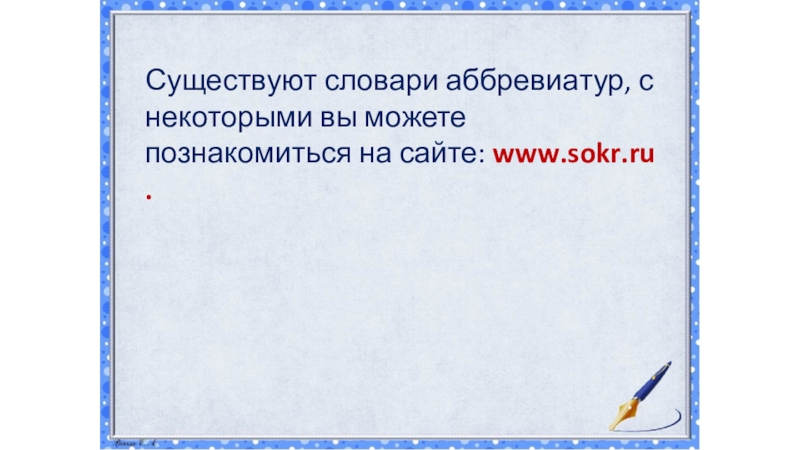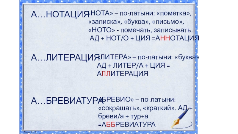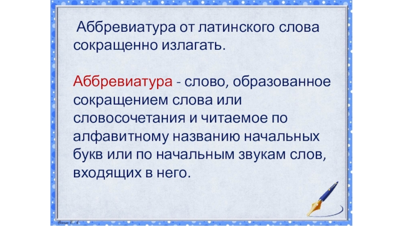 «БРЕВИО» – по-латыни: «сокращать», «краткий». АД + бреви/а + тур+а =АББРЕВИАТУРА