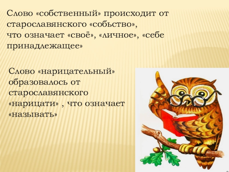 Слово «нарицательный» образовалось от старославянского «нарицати» , что означает «называть»
