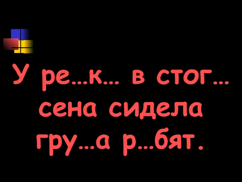 Слайд 8У ре…к… в стог… сена сидела гру…а р…бят.