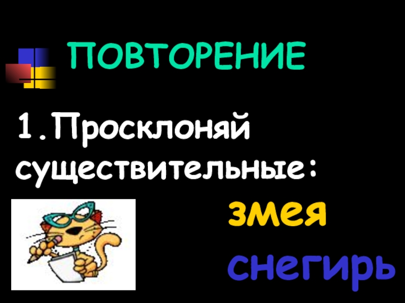 ПОВТОРЕНИЕ1.Просклоняй  существительные:змея снегирь